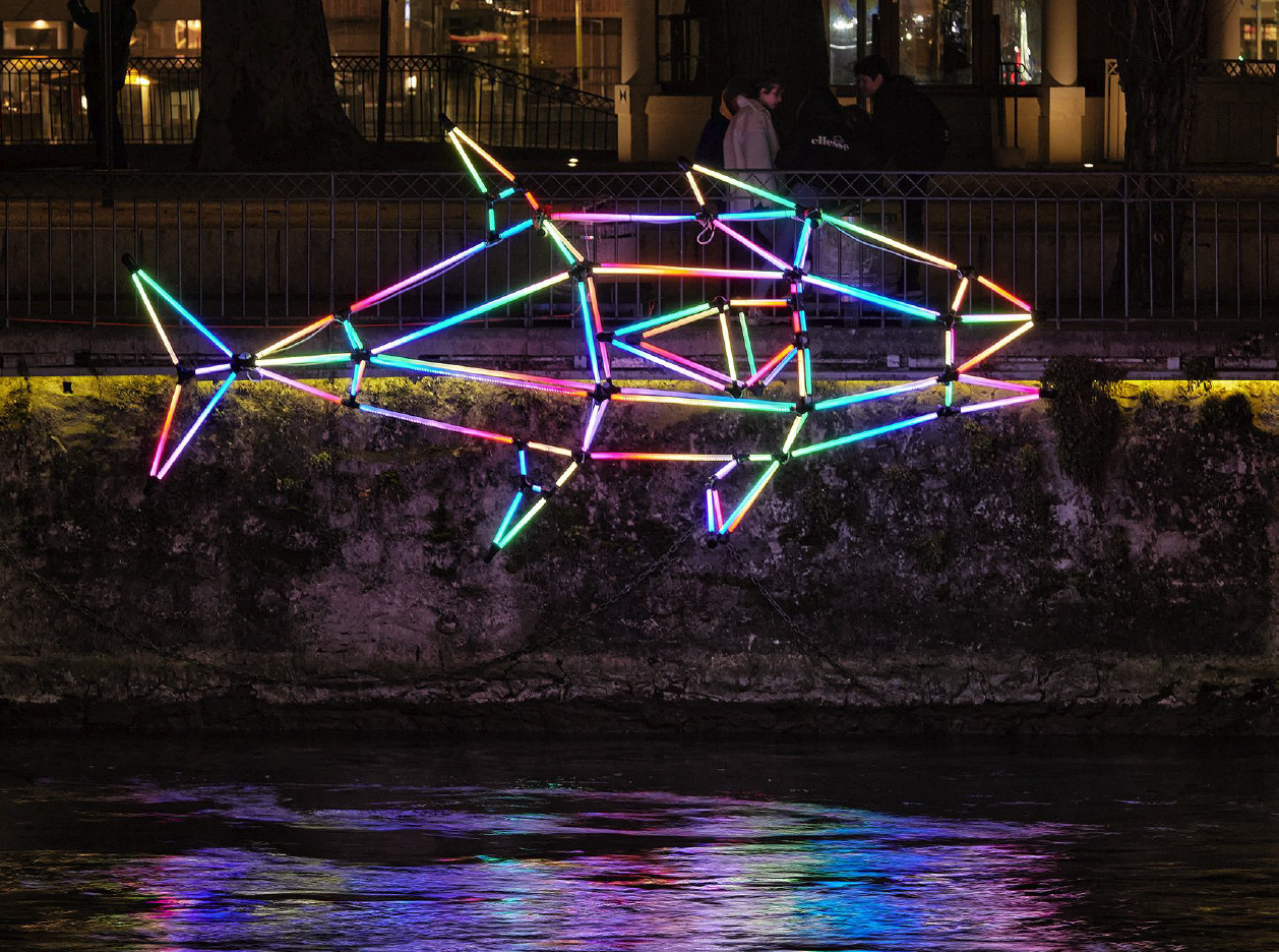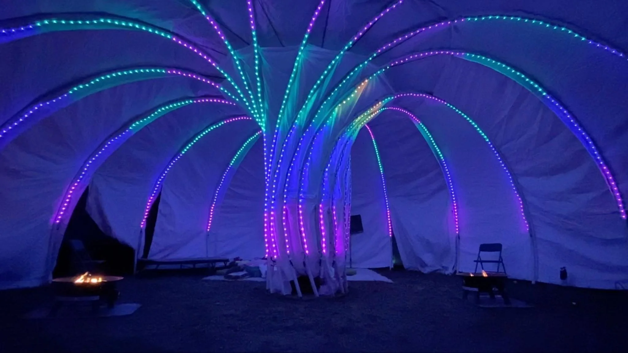 MegaloTorus translates that hidden geometry into a sculptural experience of light and sound. Participants are invited to step into a physical interpretation of the magnetic field that shapes the aurora, surrounded by flowing color and rhythm. The piece explores the forces that give rise to this celestial phenomenon—making the structure and motion of the aurora something you can step inside and feel.