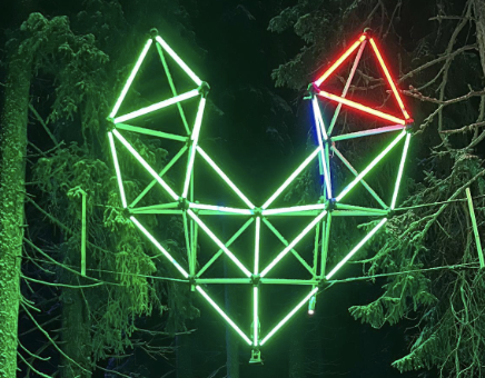 MegaloTorus brings this shape to life, evoking the invisible toroidal field that surrounds our planet—the same field that shapes the aurora. Through flowing light and sound mapped across its structure, participants step inside a sculptural interpretation of Earth’s hidden geometry, experiencing the rhythm behind the northern lights in a new and immersive way.