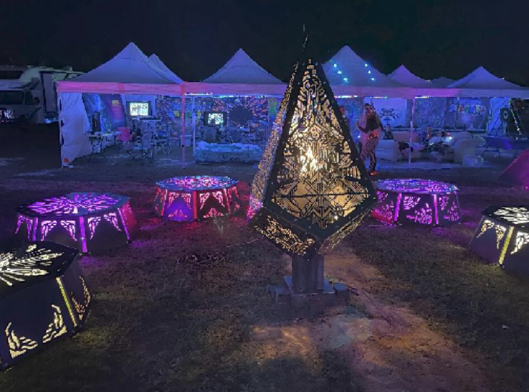 Scorched Steel Inc is a collective of passionate artistic professionals dedicated to inspiring deep thought through unique, transformative experiences. Our collective expertise spans a vast array of artistic mediums, special effects, production, and technical engineering, all of which are synergistically integrated to produce our distinctive and compelling sculptural works. The company was founded in 2019 by Colorado Natives Joshua Birkmaier & Kelsey Sailsbery. These two individuals design concepts and orchestrate their crew of talented individuals at their workshop in Denver, CO. Their artworks have been displayed internationally at nearly 100 music, art and community festivals!